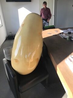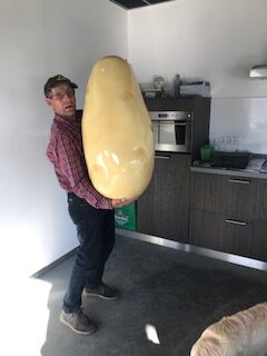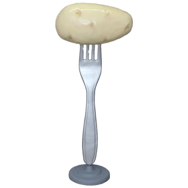 De geweldige aardappel 90 cm lang, is een pronkstuk voor iedere AGF-handelaar, akkerbouwer en patatfabrikant; het laat zien wat er te koop is of wat er geproduceerd wordt.  Ook kan de oorsprong / grondstof voor chips, patat en vele zetmeel producten er mee verduidelijkt worden. De aardappel is gemaakt van glasfiberverstevigde polyester, kan dus tegen een stootje € 225 + btw.  Eventueel kan de aardappel op een 2 meter hoge vork worden geplaats die in een zware voet gezet kan worden; dit model € 525 + btw